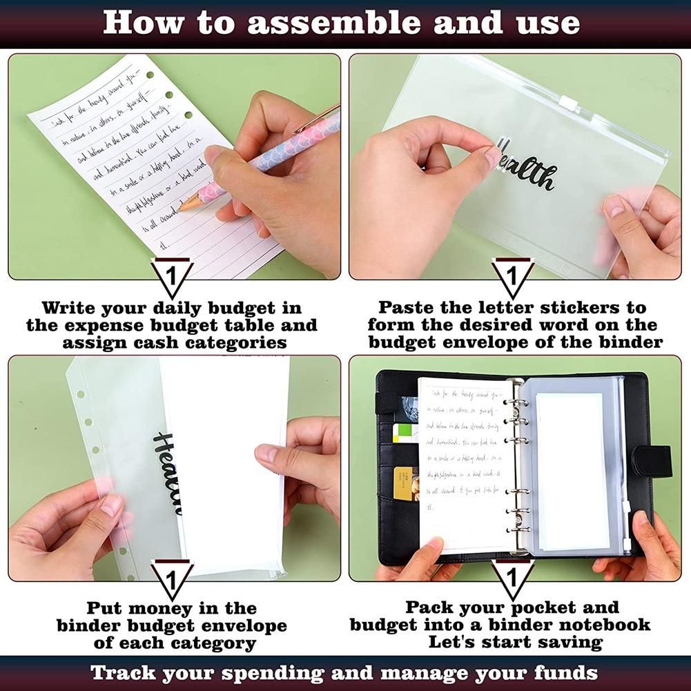 Ready to use: just need to press the 2 ends of the switch to open the loose leaf ring of the binder cover, then press the ring to close it after installation, the labels can be easily attached to the front of the zipper bag to help quickly identify the bag, manage your money effortlessly