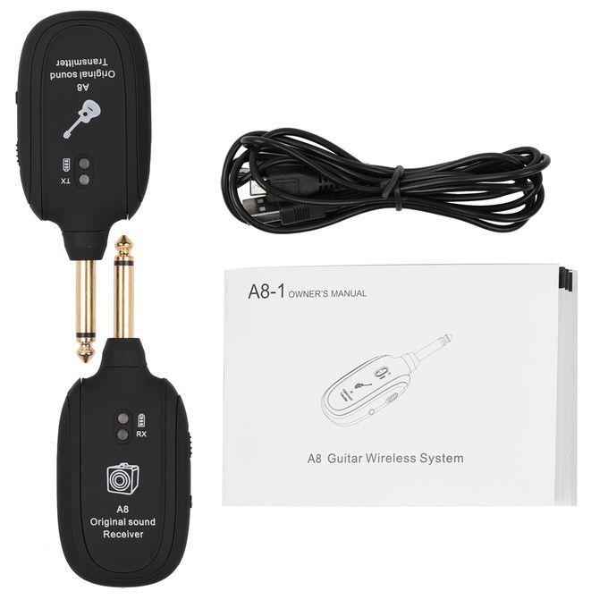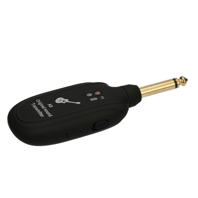 Wireless transmitters and receivers for electroacoustic instruments such as guitars and basses.