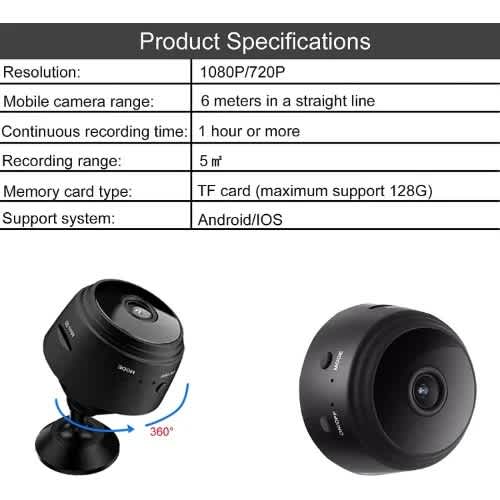 Description:First,be sure the battery fully charged,press the red/blue light on/off,and then press and hold the mode.Just wait for the red light to appear.GUARD YOUR HOME SECURITY ANYTIME ANYWHEREWIDE VIEWING ANGLE, NEVER MISS ANY DETAILWith a 150-degree viewing angle, the camera provides a wide viewing range in your room. It enables you to know every movement happened in your house anytime anywhere.ALL-PURPOSE MAGNETIC, EASY TO FIXA built-in magnet with a magnetic base can stick anywhere you want.ENHANCE NIGHT VISION, SEE CLEARLY IN THE DARKFEATURES:- 1080P Full HD Brings You A Different Experience. This wireless IP camera lets you view real-time what's happening inside your home or office even while you're away on a vacation or a quick business trip. The remote view can be accessed via the - - - APP(V380PrO) using iOS and Android smartphones.- This wireless IP camera can work on WiFi (2.4GHz WiFi only) or No WiFi. When it works on No WiFi, insert a Micro SD card (SD card not include) and turn on, the camera will recording and saves the video files to the SD card (SD card not include).- Night vision & motion detection & alarm push, those functions are the basis for this indoor security camera. You can not only see things in the dark but also capture anybody who is moving in the camera.- This small camera bathroom has a built-in magnet, can work well with any iron material, easily place anywhere. This small camera with a rigid charging cable and magic base, when charging while recording, you can manually rotate the recording angle 360 degrees.Specifications:Material: Aluminium alloySize: 5*4.5*4.5cmColor: blackResolution Ratio: 1080P/720PVideo Format: AVIMemory Card Type: support Micro SD card up to 128GB, (TF is not included)Compressed Format: H.264APP Support: Android/iOS150 & deg;Wide-angleBattery working time: 60 minutesSupport Night versionWifi controlled by Cellphone or computerHow To Use:Download the APP in APP Store or Google Play.Press the ON/OFF button about 3 seconds to turn on the camera.Find and connect the camera wifi hotspot in your phone WLAN setting. Or, scan the camera QR Code and connect your home 2.4GHz wifi in the App Device Settings-WiFi Config.Package Included:1 x WiFi wireless camera1 x USB Cables1 x Instruction Manual