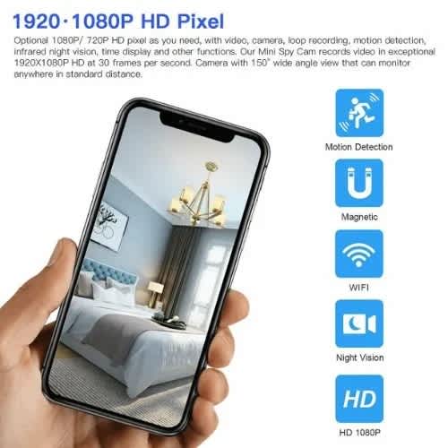 It can be used with a wide angle of 140 degrees and a 1080P lens. Act as a surveillance camera in Office, Home Car, etc. With Romotely mini camera you will never miss any details clearly that & rsquo;s happening in the room.