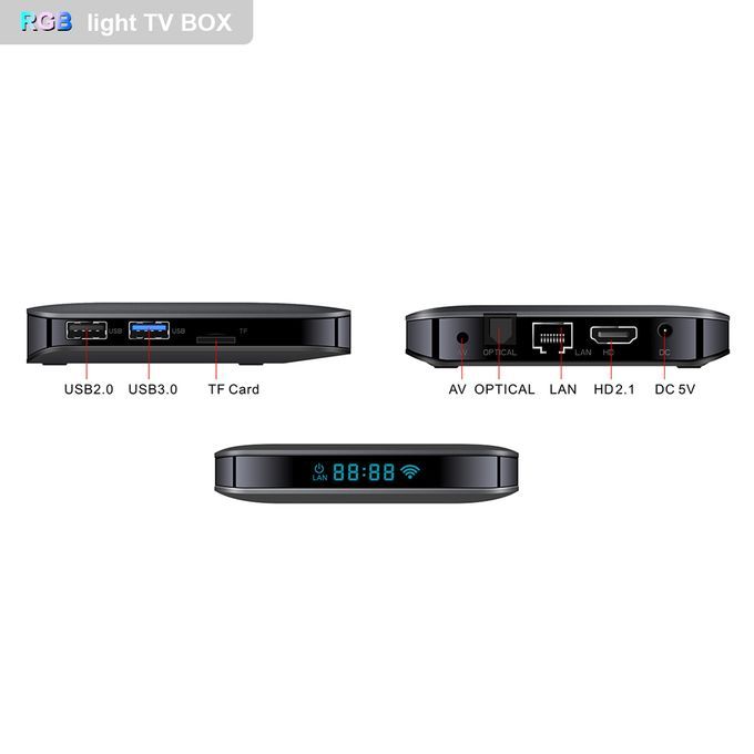 I/O Interfaces: 1 * HDTV, 1 * USB 2.0, 1 * USB 3.0, 1 * TF Card Slot, 1 * AV Output, 1 * OPTICAL, 1 * RJ45, 1 * DC IN