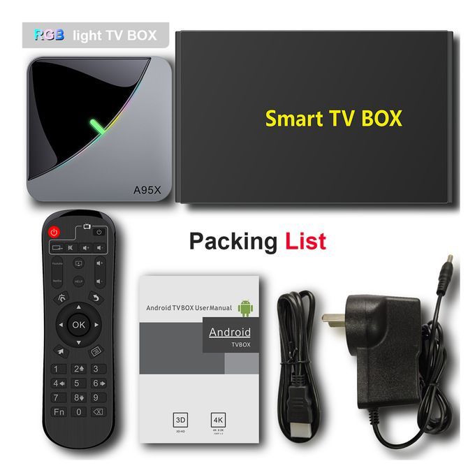 1 x A95X F3 AIR TV Box,1 x Adapter,1 x IR Remote Control,1 x HD Cable,1 x User Manual (English)