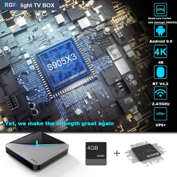 xPowered by Amlogic S905X3 64-bit Quad-core ARM Cortex A55 CPU with upgraded performance, more powerful than S905X2. Support 8Kx4K 24fps, 4Kx2K 75fps.