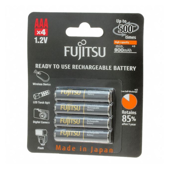 rechargeable batteries? High capacity Fujitsu Black AAA 950mAh low self discharge rechargeable batteries suitable for use in all devices that use a AAA battery, especially demanding high drain applications.