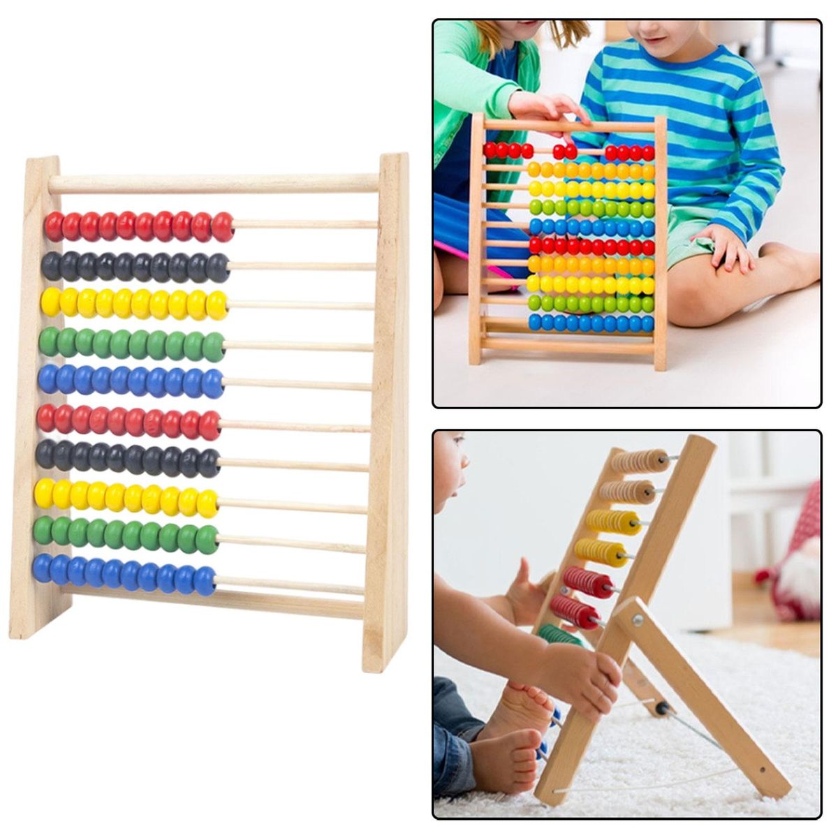 【Wooden Structure Material】: Frame abacus toy is made of wooden structure frame, the edges are smooth and burr free, not hurting hands, each row can hold ten beads, 10 rows total 100 beads.