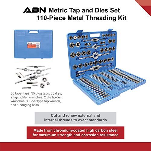 - CUT & RENEW THREADS: The ABN Metri Tap and Dies Set -Piee Metal Threading Kit uts and renews external and internal threads to exat standards; Ideal for professional mahinists and DIY weekend warriors alike to rethread existing auto and mahinery fasteners, remove srews/bolts, ut raw material; Tap wrenh fits the different sizes of taps, thread taps are used to proess internal thread, thread die set is for external thread, plug taps suitable for leaning and rethreading