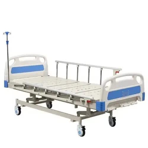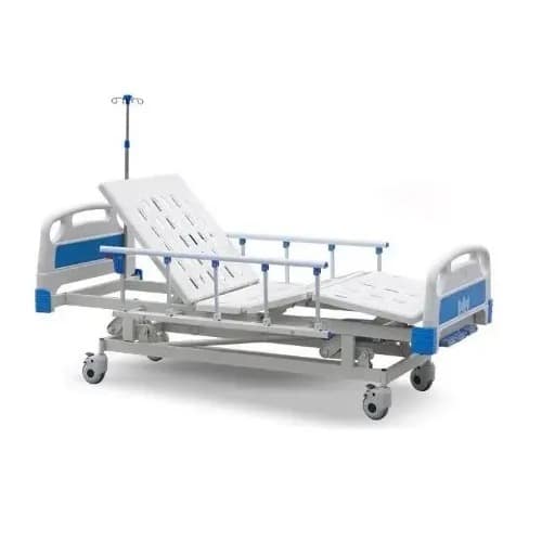 is also called three functions manual hospital bed. The main function of the is its back adjustment, leg adjustment and height adjustment. 3 crank hospital bed can add on-bed infusion poles and over-bed tables and other related basic configurations.