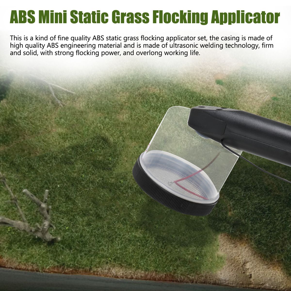 This is a kind of fine quality ABS static grass flocking applicator set, the casing is made of fine quality ABS engineering material and is made of superior welding technology, firm and solid, with strong flocking power, and overlong working life. Humanized antiskid handle in suitable size for comfortable grip, circuit inside the handle is with low power dissipation and high voltage output, makes this flocking machine quite strong flocking capacity. Specially design for flocking in small area, sand table construction model, and other DIY scenes. You can have a try.