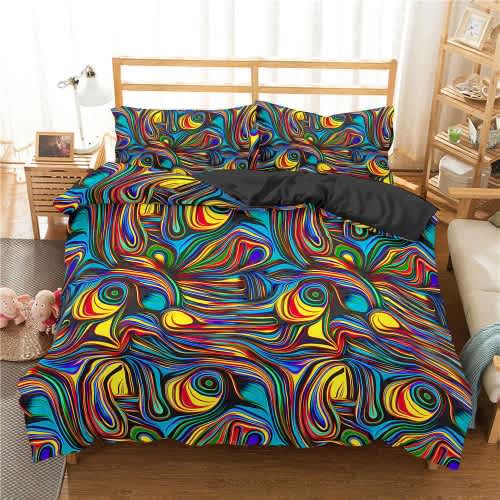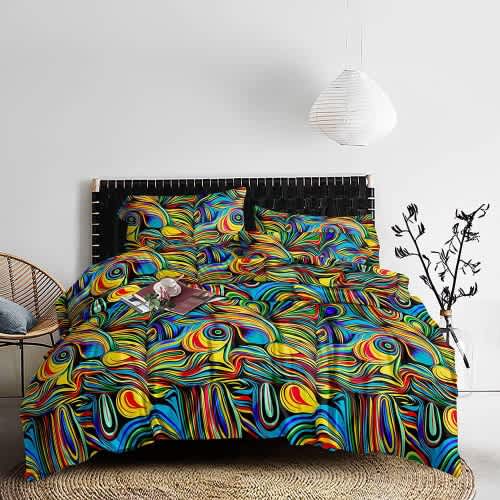 Buy Abstract Art Multicolored Bedsheet And 2 Pillow Case Bedding Set - Rainbow - 6 By 6 in Nigeria