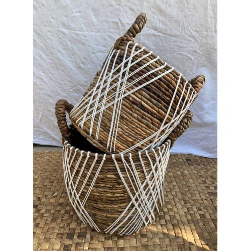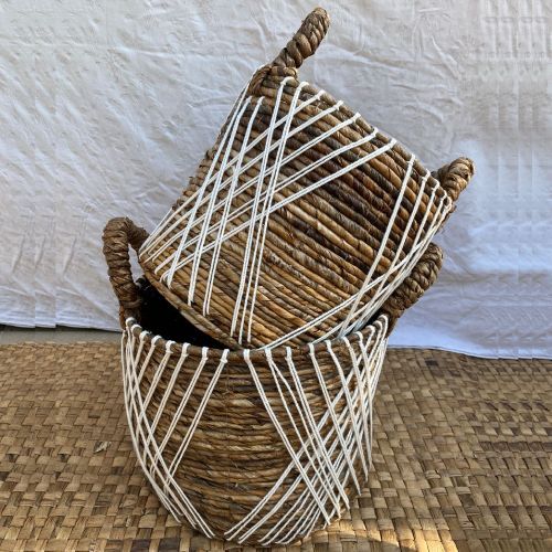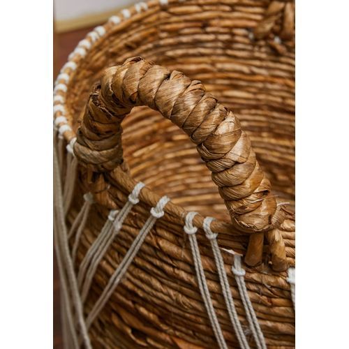 Modern design in a minimalist style with a hint of white macrame hand woven basket, that comes as a set of 2 (small & big).