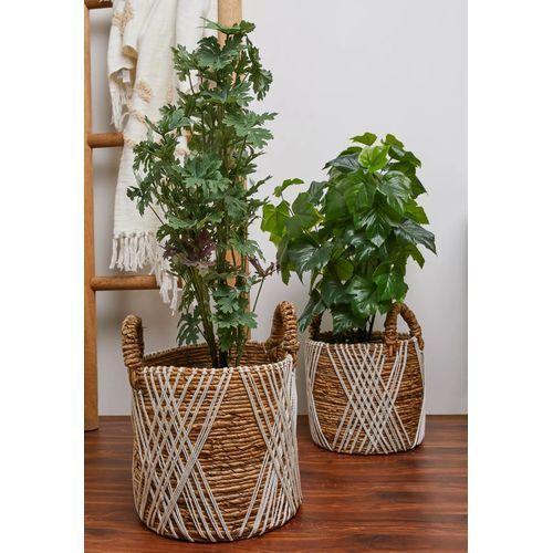 The Plant Holder is composed of eco-friendly authentic Seagrass, which makes it a fascinating addition to any gardening collection. The Abyad planters contrast nicely with the material's natural tint. They come as a single piece but can be bought as a set of three to enhance your corner. And are ideal for growing natural flowers, indoor plants, or succulents. Make your plant look more beautiful and organize your laundry, toys, and pillows by putting them in these beautiful handmade jute & cotton baskets. Simplify your storage needs with this handy versatile storage basket. Modern design in a minimalist style with a hint of white macrame hand woven basket, that comes as a set of 2 (small & big). It can be placed on any surface (indoor or outdoor) & reflects minimalism with elegance. Ideal for most home decors and furnishings, it can be paired with a variety of plants, such as the violin leaf fig tree, cactus, money plant, monstera.