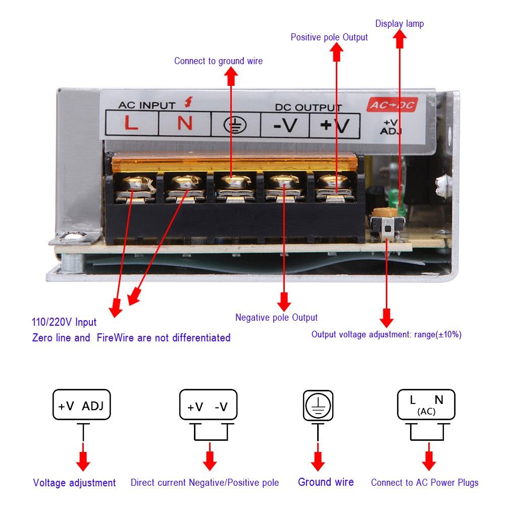 Widely used as the power adapter for Led strip, LED display, billboard, industrial equipment, etc. IN-DOOR USE ONLY!