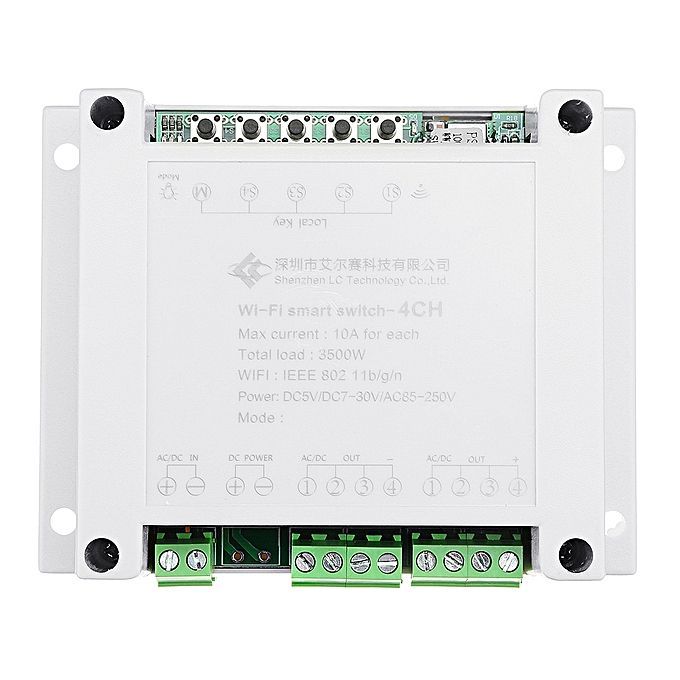 Specifications of AC 220V 10A Control Smart Switch Point Remote Relay 4 Channel WiFi Module With Shell SKUGE779EL0936F4NAFAMZ Size (L x W x H cm)12x10x5 Weight (kg)0.176 Colourmulticolour Main materialn/a Product warrantyn/a