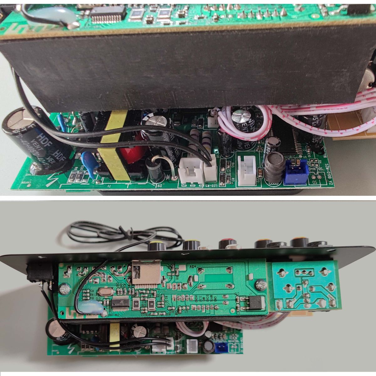 Features: 1. Support reading MP3 songs in TF card and U disk; 2. Support independent adjustment of treble, ba and master volume; 3, Working Voltage : AC 220V or DC 12~24V 4, With AUX Audio input, can be connected to the computer, mobile phone or CD 5, Digital power amplifier, peak power 400W, can drive 4100 magnetic speakers; 6, Dual microphone input, adjustable reverb; built-in Bluetooth wirele Receiver and FM radio . About more: (1)How to Connect to Bluetooth : Pre the “MODE” on to switch the machine to Bluetooth status, open the mobile phone Bluetooth, search for the Bluetooth device with the mobile phone, search for the product and click the Bluetooth name of the product to connect. After the connection is completed, you can receive the music played on the mobile phone. Notice: Some mobile phones will prompt you to enter the PIX code. You can enter “0000” at this time (if the phone supports the easy pairing function, you do not need to enter the PIN) (2)Radio function operation instructions: 1. Hang up the radio ; 2. Pre the MODE on to switch to the radio state; 3. Pre the play on to search the entire channel and automatically save the station; 4, pre the previous or track to switch to the or station Note: The radio effect is not ideal, mainly for the radio, please buy a profeional radio. (3)Power Wiring Instructions (Please follow the instructions carefully to avoid unneceary damage): 1. The panel DC12V/24V interface can be connected to DC 12V or DC 24V, and the current requirement is more than 3A (available battery or power adapter); 2, panel AC 100-240V interface can be connected to AC100V-240V AC power with 8 word power cable (not touch the circuit board after power on, so as to avoid electric shock). Note: The above power-on methods can be connected in any way, and cannot be acceed at the same time. (4)Wiring instructions: 1. Connect the subwoofer: connect a speaker with about 100 magnets or a speaker with about 100W: 2, Connected to the tweeter: can be connected to 30W tweeter (It can also be disconnected) (Add a capacitor when the tweeter is connected) 3. Suitable for 8-12 inch speakers. Notice: Please turn off the small master volume before power-on test. Then increase the volume slowly after power-on. If the sound is intermittent or the sound is hoarse and distorted during the proce of increasing the volume, the speaker and the amplifier are not matched. Please use the small sound or change the package. The speaker is used. (5)Package include: 1pc AC 220V 12v 24v Digital Bluetooth Stereo Amplifier Board 1pc Remote control 2pc Audio Cable 1pc DC Power supply cable Notice:Because of national delivery regulation,the battery of remote will not included for some country,please prepare yourself,thanks.
