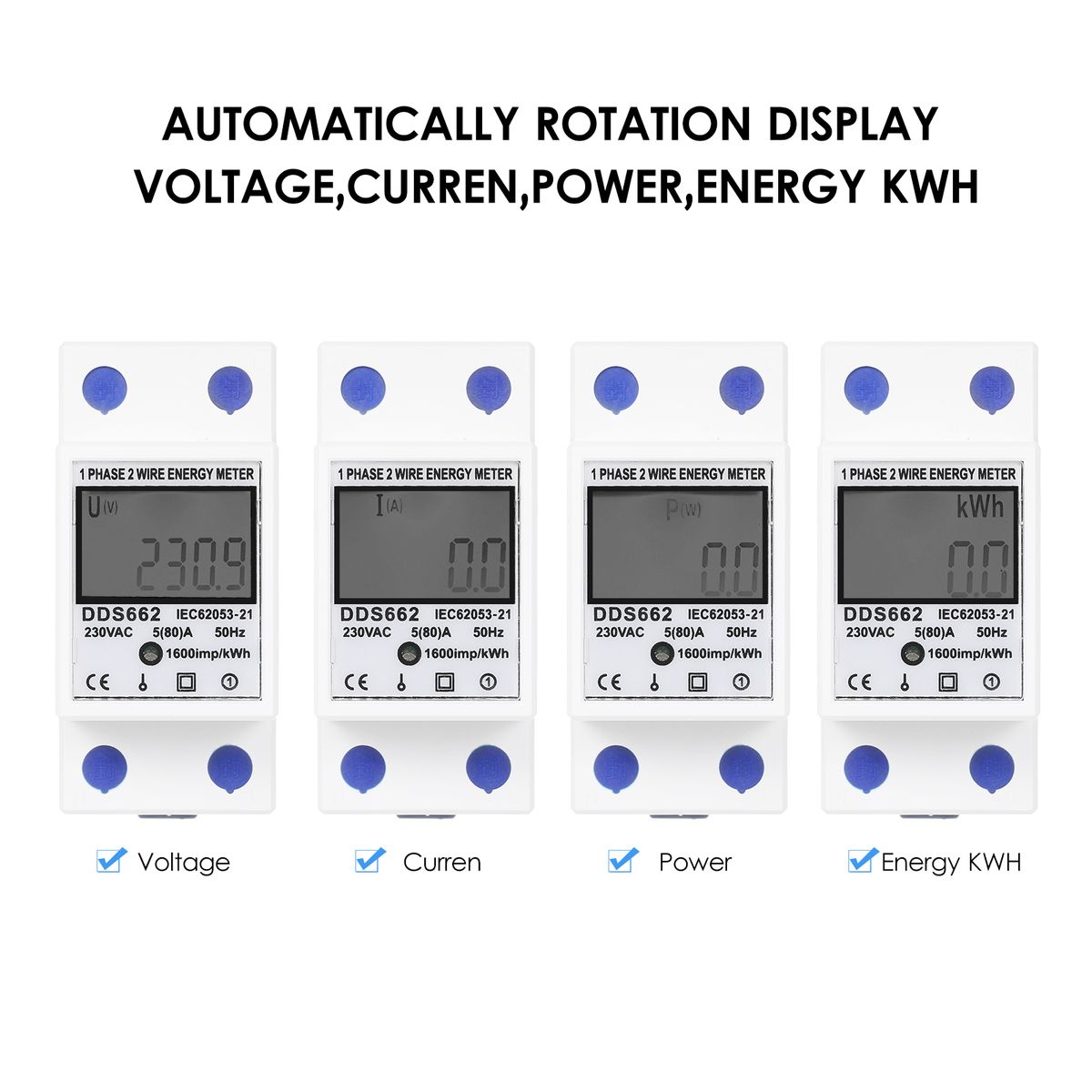 【Multi-Function】It displays electricity, voltage, current, frequency, power factors.