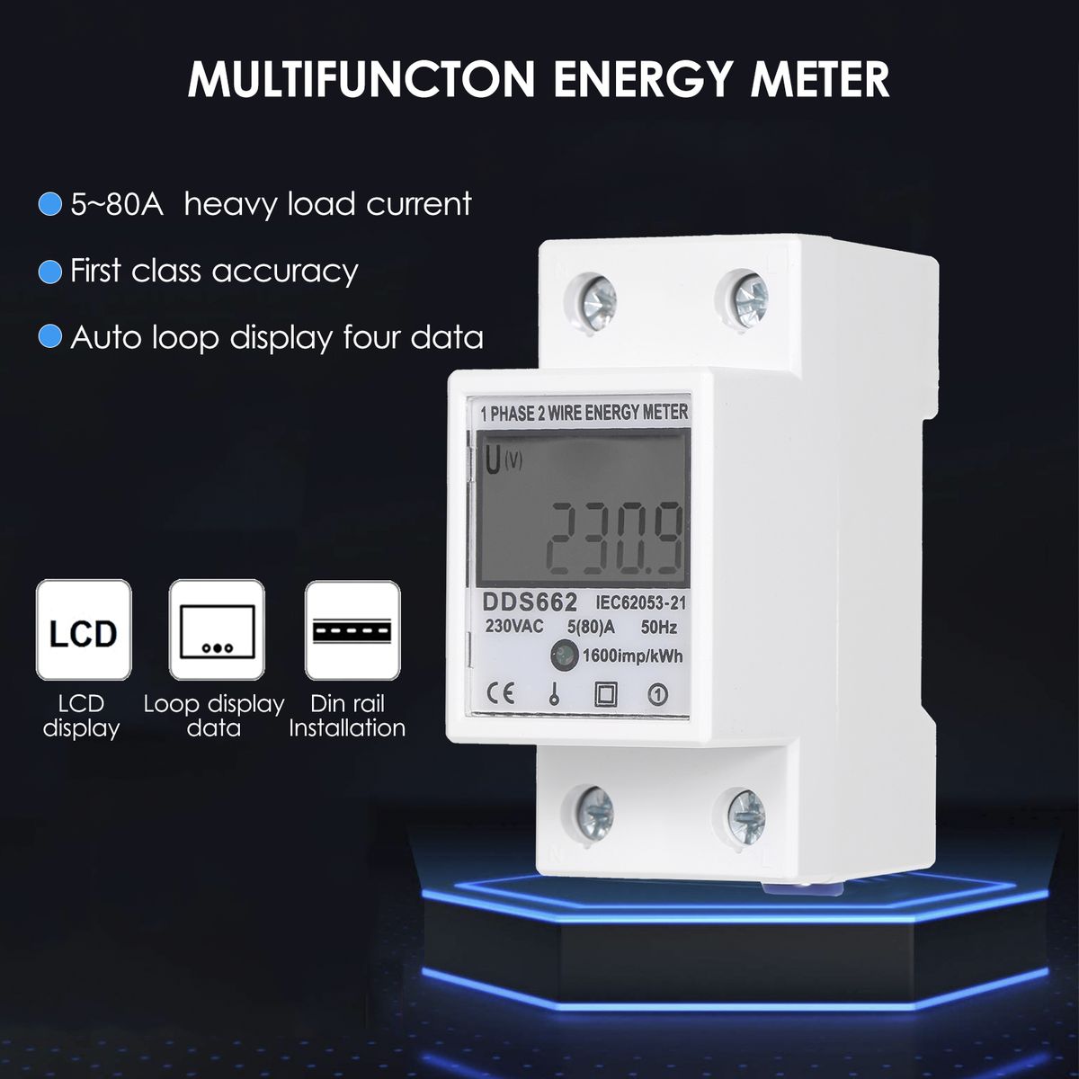 【LCD Display】The energy meter can measure the positive active energy in the energy measurement, which can be clearly displayed through the LCD screen.