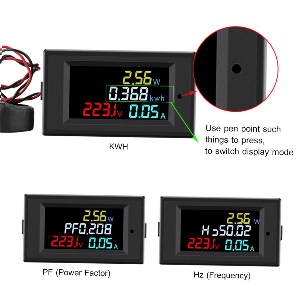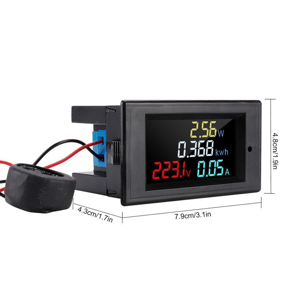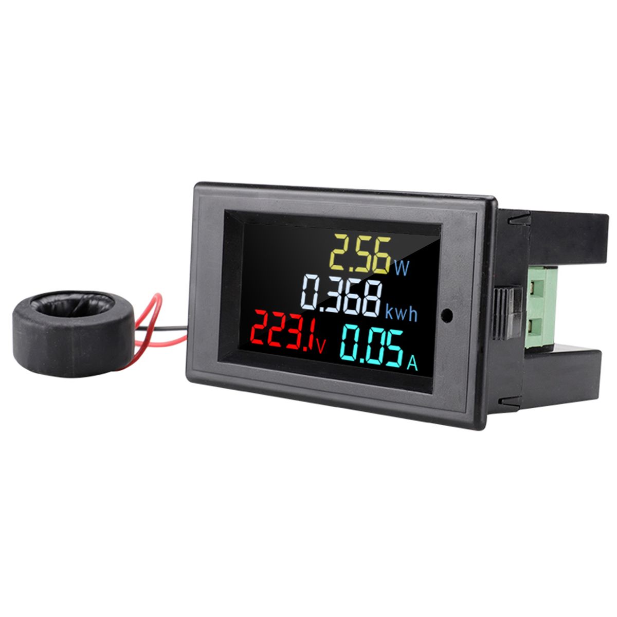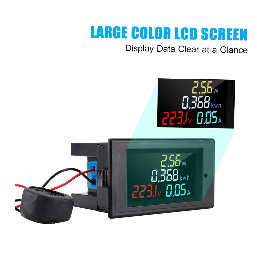 The meter features durable, practical and accurate(but cannot be calibrated), has a very nice color display LCD where it clearly shows the electrical values, enables to simultaneously measure and display the AC voltage, AC current, active power and electric energy.
