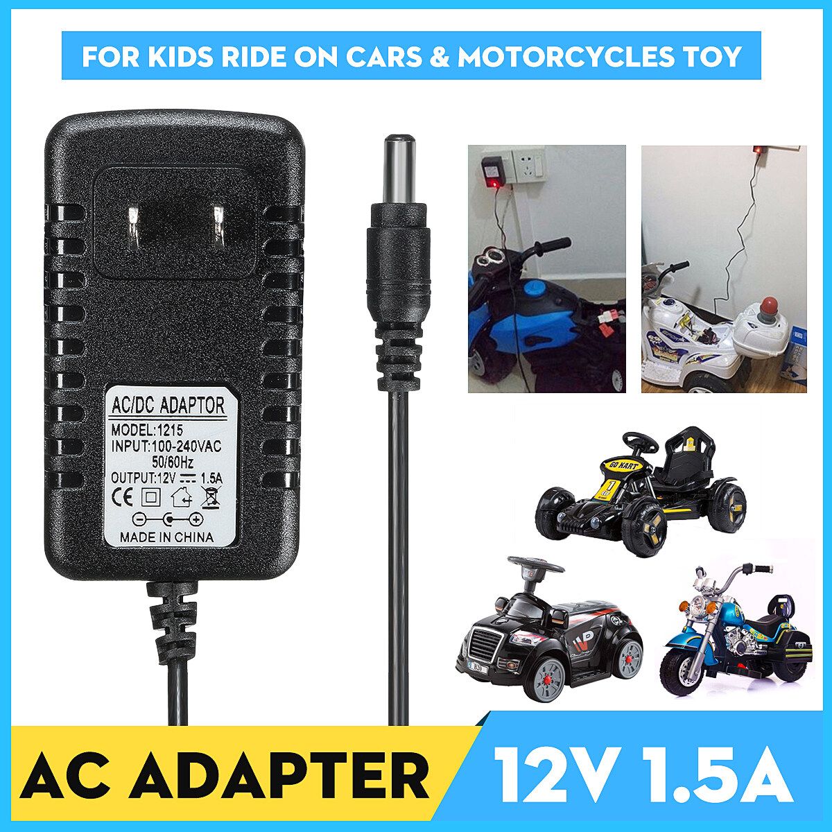 Name:12V AC Adapter Charger For Kids Ride on Cars Motorcycles toy 12Volt