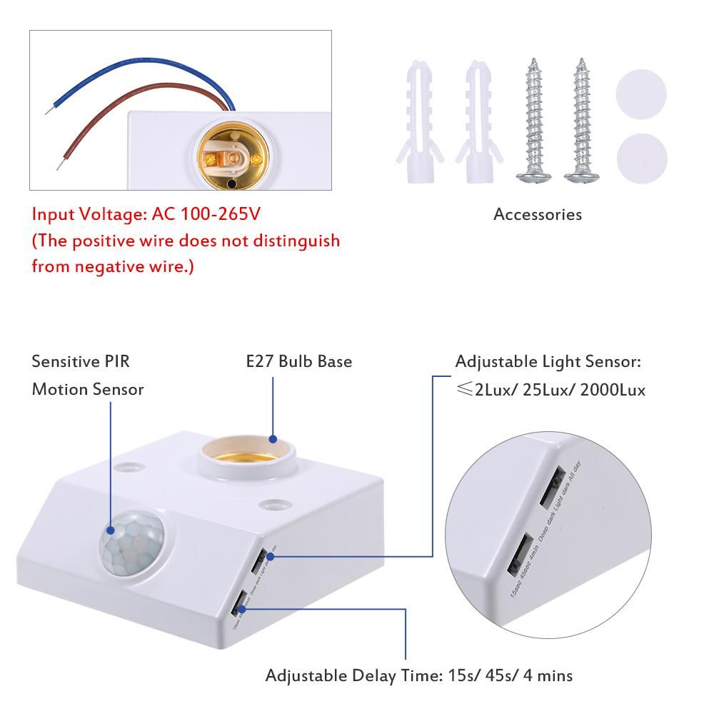 Buy AC100-265V 50W(Max.) Mini PIR Motion Sensor E27 Lamp Base Socket Holder Adopted Sensitive 3 Levels Light Control / 3 Levels Adjustable Delay-time Infrared Human Technology for Lighting Fixture Lamp Living Room Bedroom Corridor Aisle Portable in Nigeria