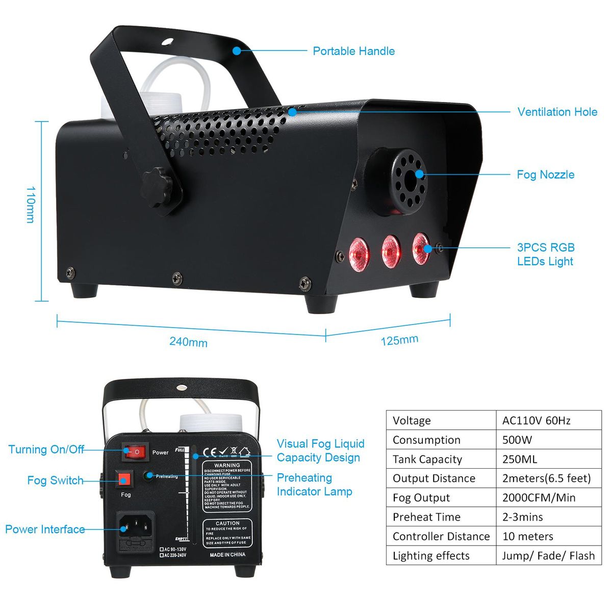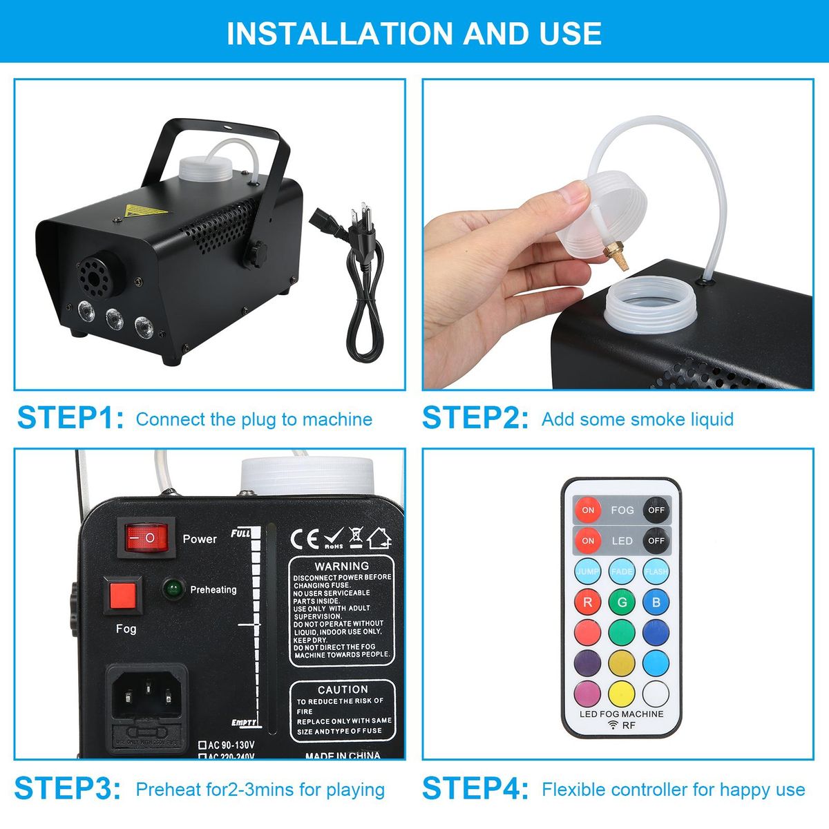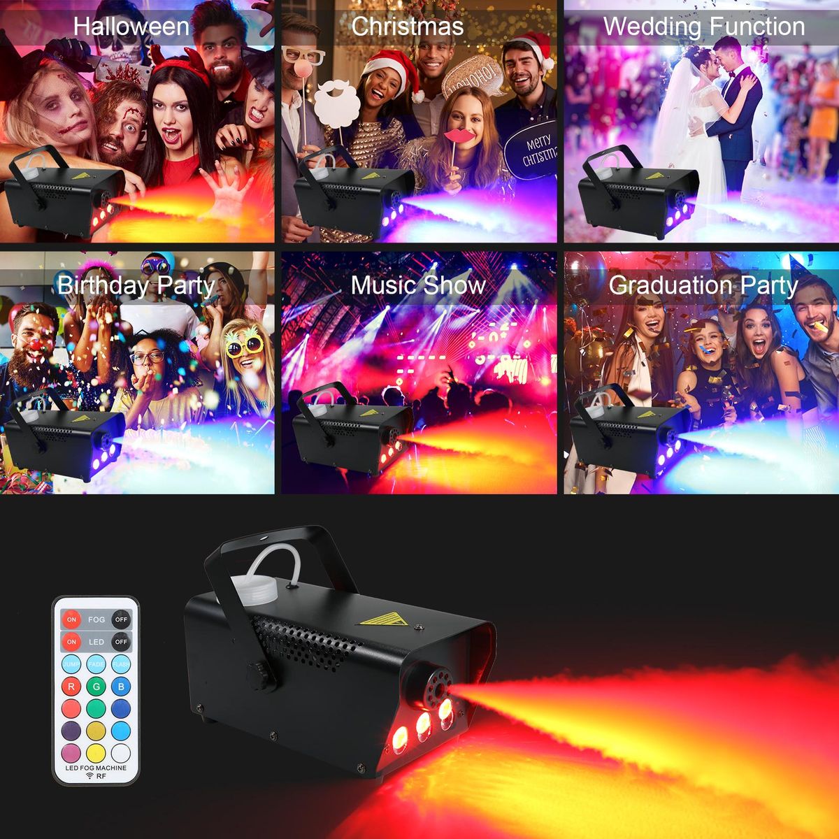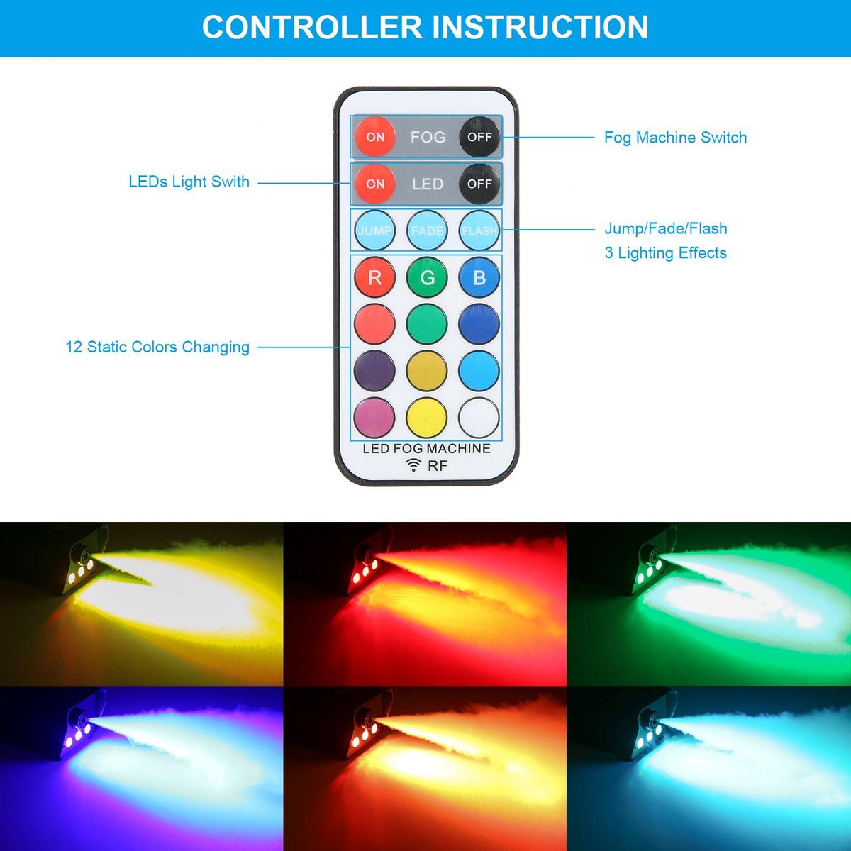 Buy AC110V 500W 3 LEDs Illuminated Fogging Machine Fogger Smoke Machine 250ML Tank with 19 Keys Controller Jump/ Fade/ Flash 3 Different Lighting Effects/ 12 Static Colors Changing for Party Gathering Holiday Festival Halloween Christmas Xmas Wedding Function in Nigeria