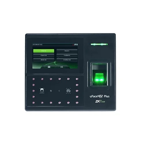 ZKTeco is now presenting the uFace401/402 Plus Multi-Biometric T & A and A & C Terminal, which supports 3,000 palm templates, 3,000 face templates, 4,000 fingerprint templates, and 10,000 cards (optional).It is equipped with ZKTeco's latest hardware platform and algorithm like 3-in-1 contactless palm recognition (Palm Shape, Palm Print and Palm Vein), so the terminal can perform bio-authentication with the palm vein, palm print, and the shape of the