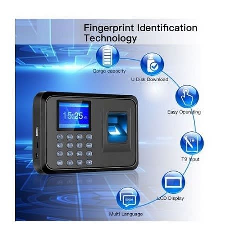 - Advanced processors, quick identification with fast analysis speed- Multi-angle recognition, convenient to use- Energy-saving fingerprint reader with intelligent sensor, can reduce the energy consumption effectively- High-quality material, anti-crash, durable and high-stability- Intelligent update function can implement registered for one time and be used for a whole lifetime, which will relieve you from many troubles- Supports Chinese or English voice prompts with clear sound- Supports USB to download attendance records and fingerprint dataSpecifications:- Identification mode: fingerprint, card, password- TFT: 2.4-inch TFT true color screen - Fingerprint capacity: 2000- Log capacity: 100,000 events- Language: Chinese / English- Voice prompt: available