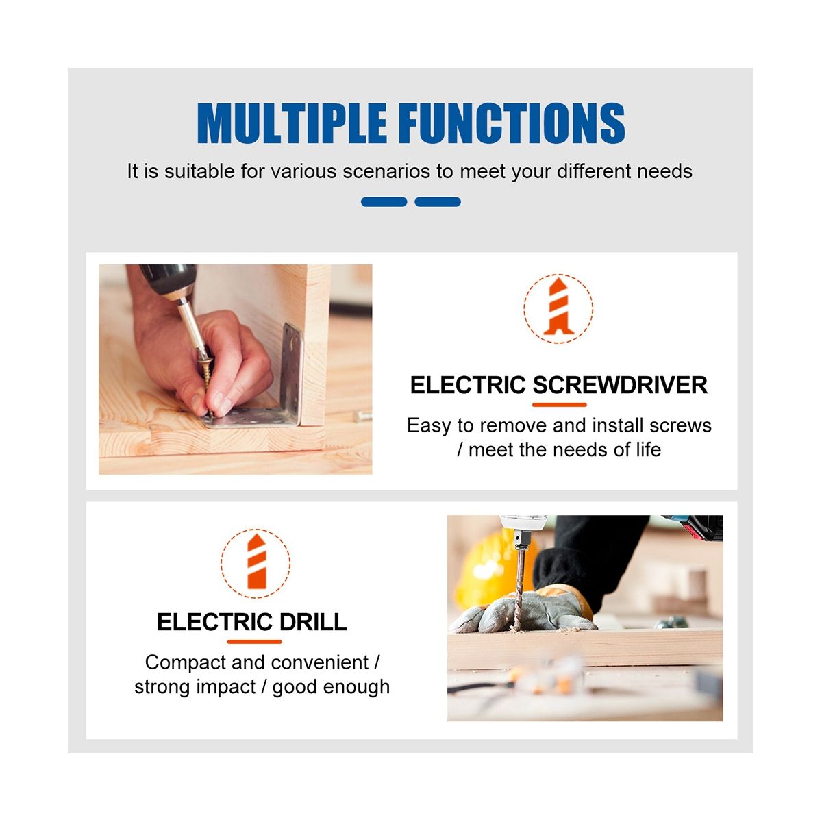[Cordless] 1. Small and portable, no need to worry about wires, can be used indoors and outdoors. 2. The electronic braking system can effectively prevent wrist injuries from bouncing after the motor stops.