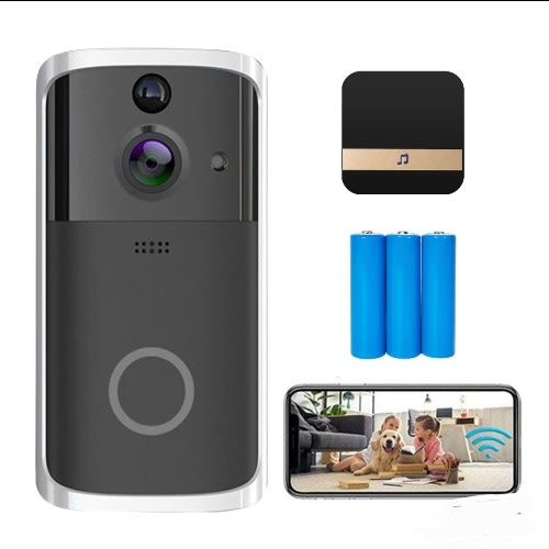 V5 Video Doorbell Camera , 2.4G Wi-Fi Connection, Wide Angle, Night Vision, Real-Time Notification,3 Batteries