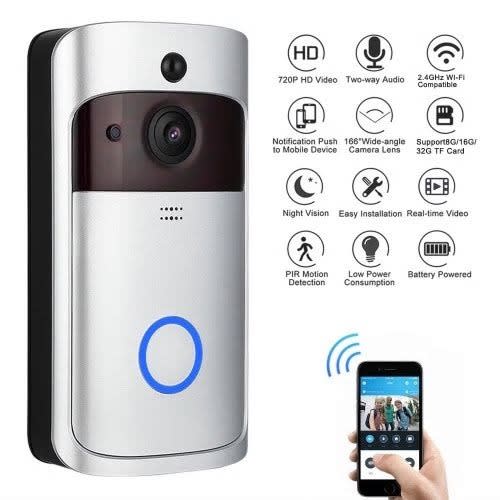 This wifi video doorbell can connect home WiFi and achieve a two-way intercom between the doorbell and cell phone. When a visitor presses the doorbell sound is activated and the camera will start sending real-time images and call to the cell phone. The user will receive the call to check who the visitor is, and then intercoms with the visitor and remotely unlocks the door.