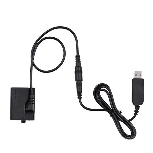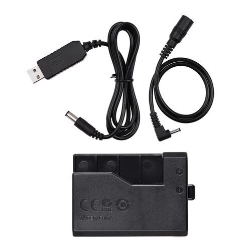 Connect the USB plug to power source and put the coupler into the camera battery compartment to provide stable and continuous power supply for your camera.