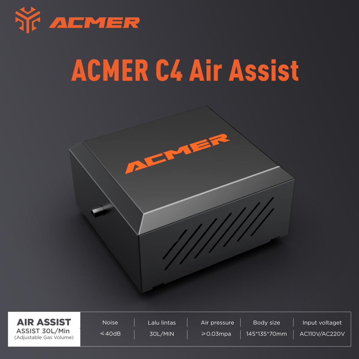 Buy ACMER-C4 Laser Cutting/Engraving Air-Assisted Accessories Adjustable High Airflow 30L/min to Remove Smoke and Dust Easy to Install Compatible with TEVOUP/ XTOOL/ ATOMSTACK/ NEJE/ Ortur/ SCULPFUN/ Twotrees in Nigeria