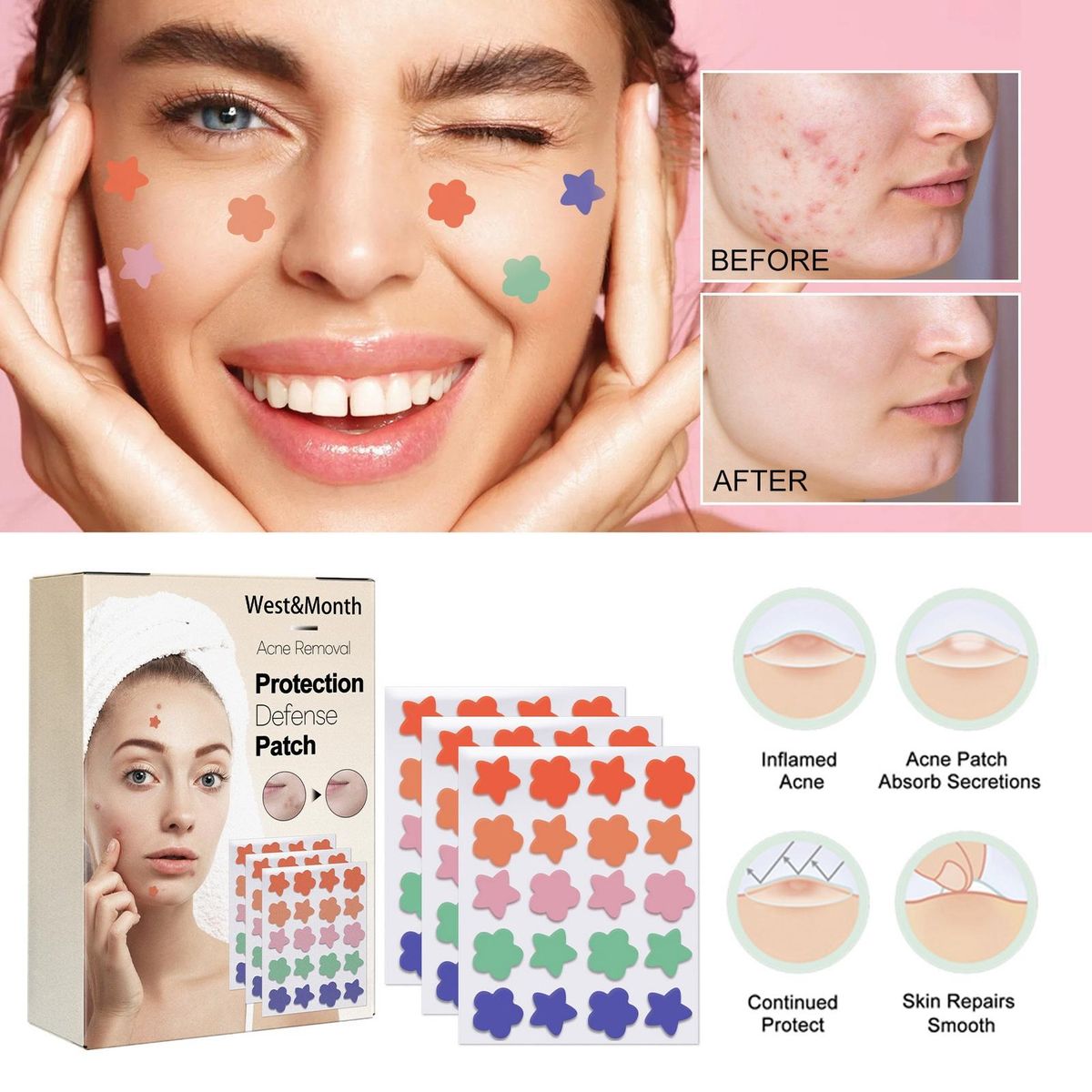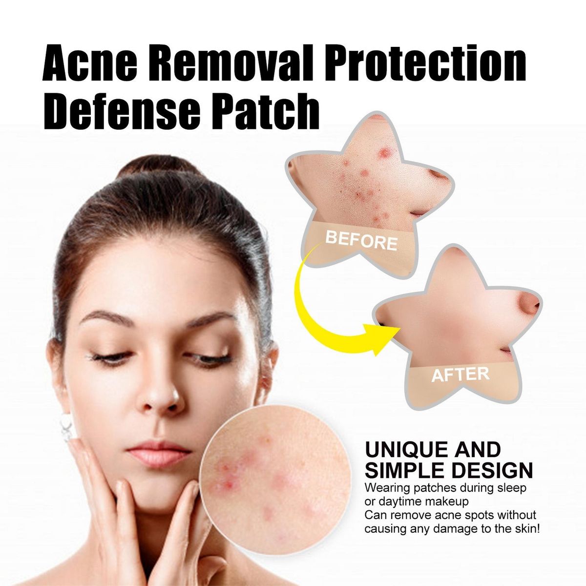 But that's not all! our acne patches aren't just functional; they can also be used as a stylish decoration during the day. simply apply them to your face and let them seamlessly blend with your makeup or skincare routine. you'll not only be treating your skin but also adding a touch of flair to your look.