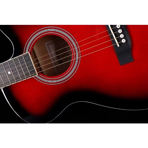 The Redburst 6 Strings Acoustic Guitar is an attractive, entry-level acoustic guitar, designed to serve as an affordable, yet high-quality, full-size guitar for new and intermediate players. This complete package comes included with a Strap, Strings and Bag to protect your guitar.Premium Build QualityFeaturing a thinline, cutaway body, designed for comfort and easy top-fret access. It is a compact guitar that makes a great companion when you're on the road.VersatileA truss rod that allows you to correct for the effects of weather on the guitar and keep the neck straight and the action height the neck can be adjusted.
