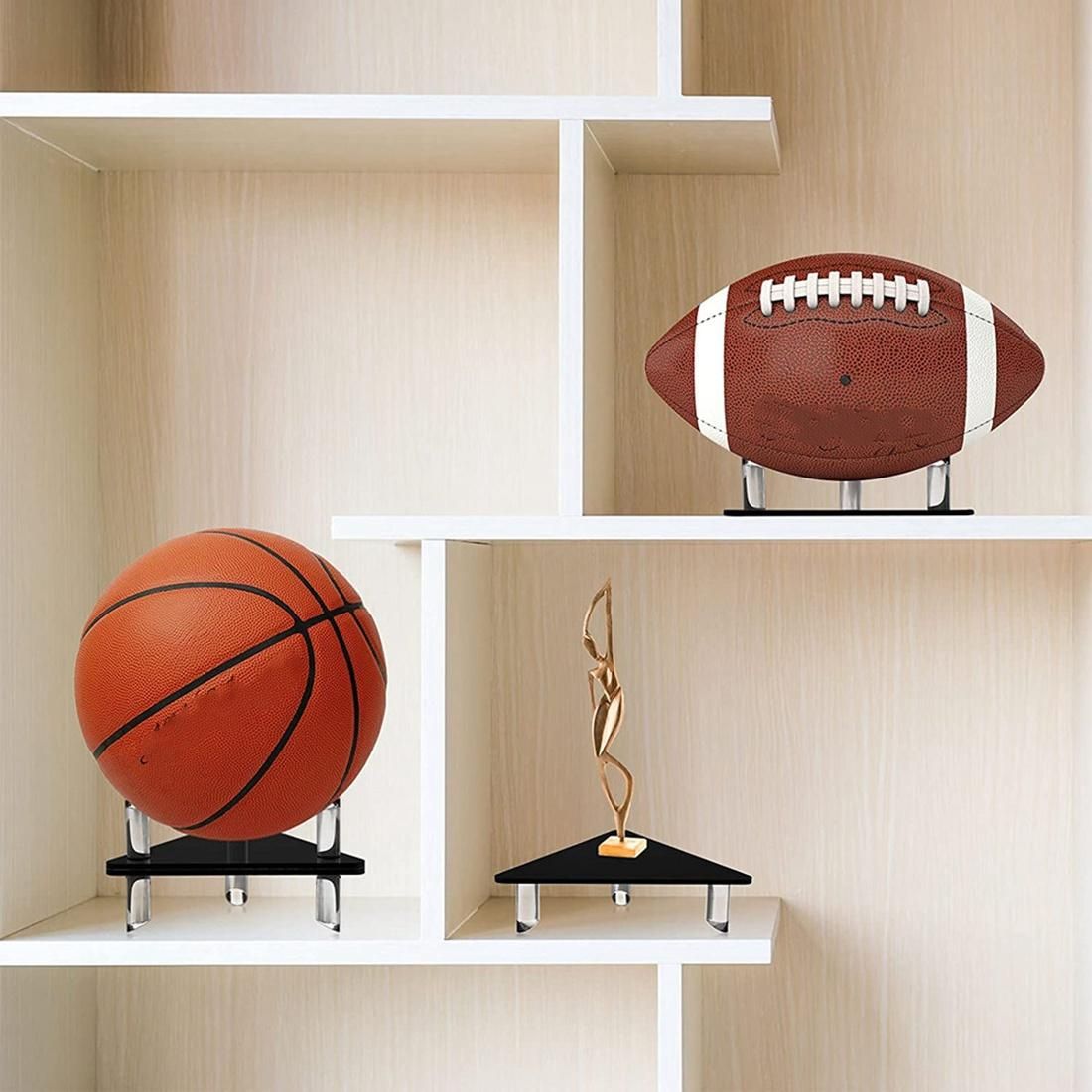 Detailed Information About The Product:Basketball Stand is made of acrylic, simple and practical; the triangular shape and clear design give this small stand an elegant look, perfect for sports balls as a decoration.