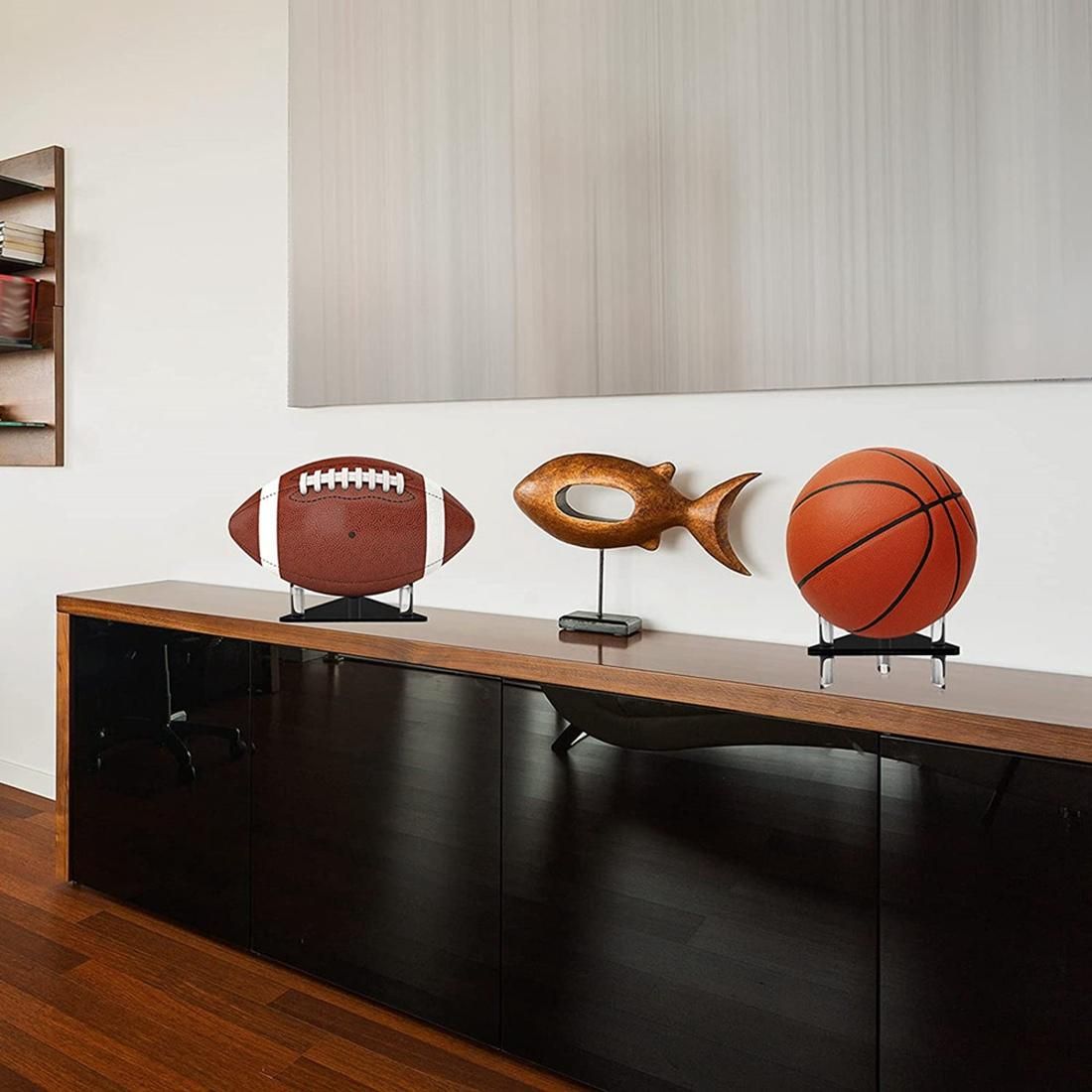 Reduce Floor Clutter: organize your ball with clear acrylic ball stand rack to keep it in p, come with silicone anti-slip pads, can be used on the bottom to avoid scratching.