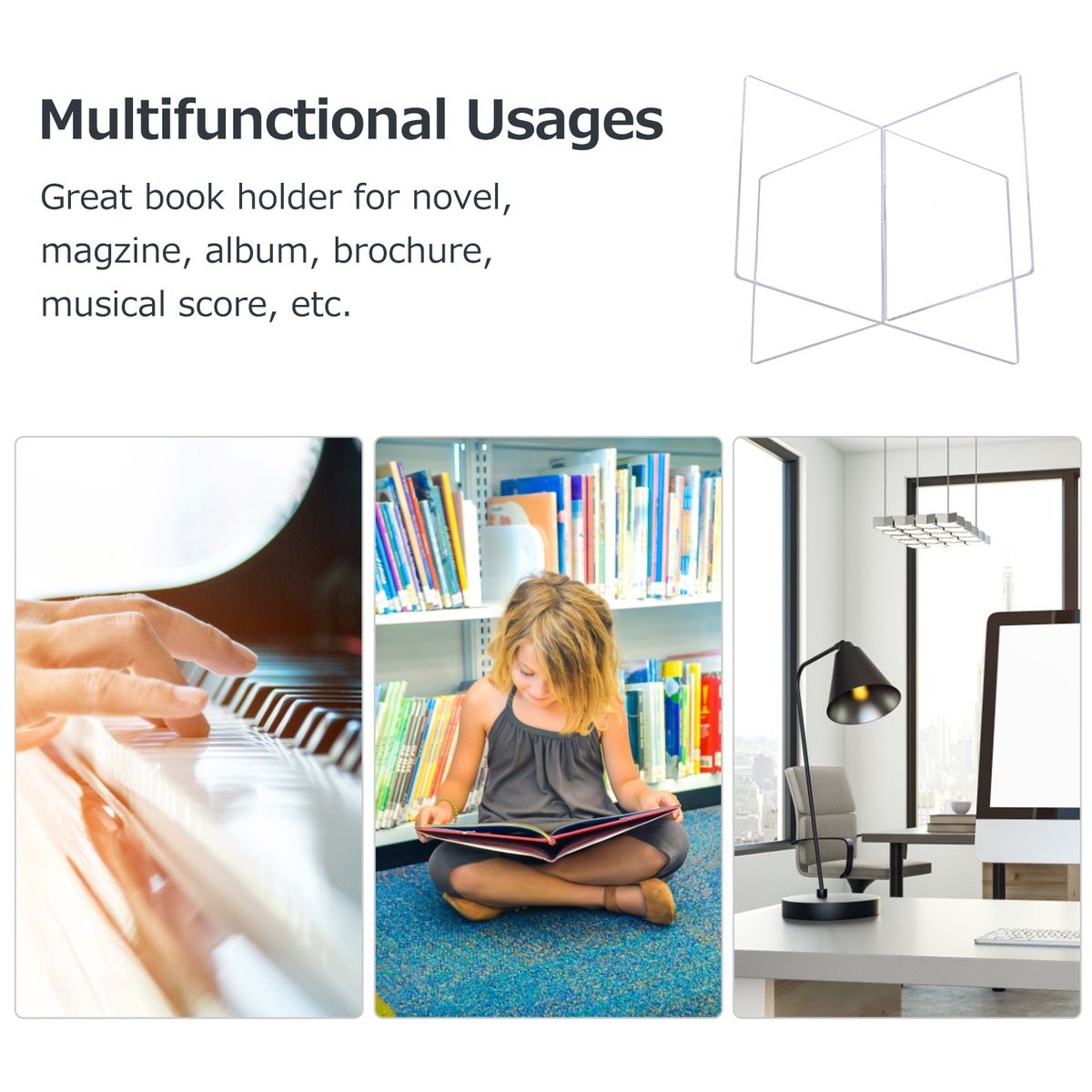 Features:This book shelf is X-shaped design, helping you to free your hands from carrying the book all time, a perfect gift for reading lovers, students, cookers, etc.