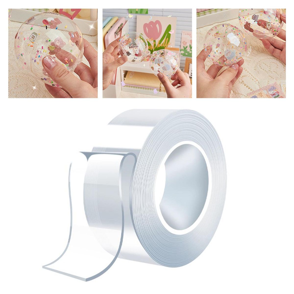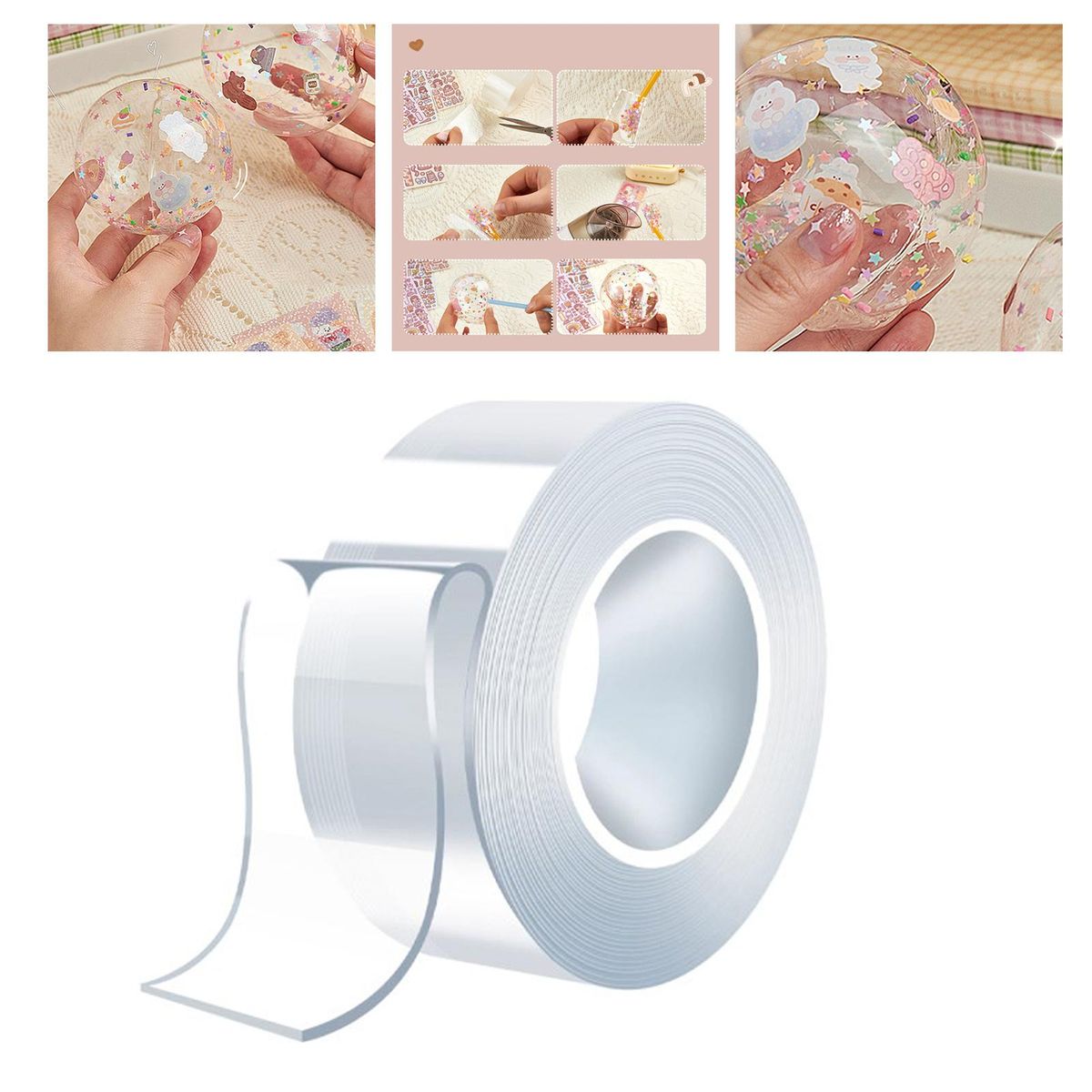 Blow Bubbles Tape: The nano two sided tape can create various bubbles you like. The product is waterproof and durable, high temperature resistant, and with high tensile strength.