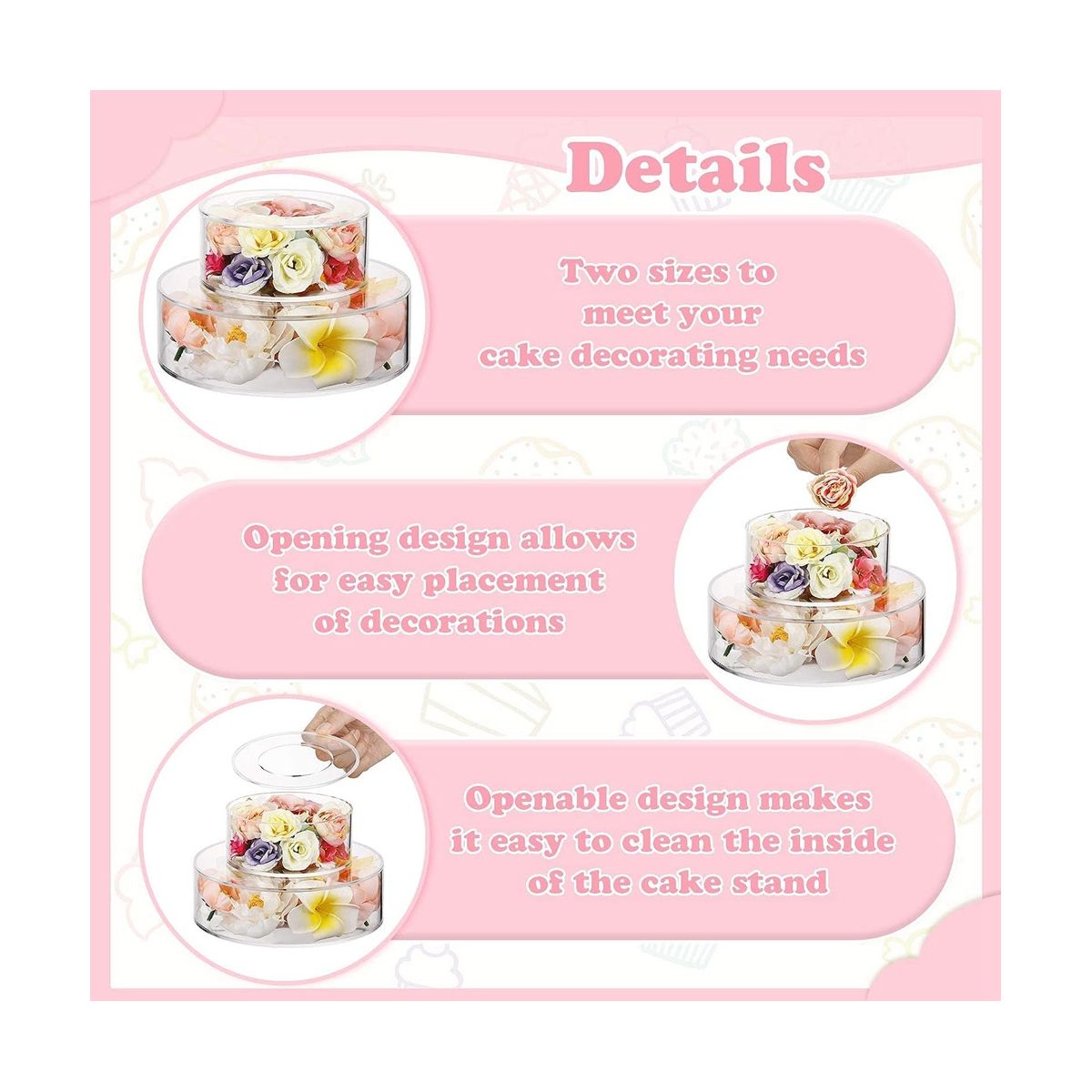 Quality materials: The cake stand display box is made of high quality acrylic board, which is sturdy, allow stacking. Can be used as a top, middle or bottom tier of a celebration cake. Fully transparent design makes items visible from all sides. 95% transmittance which can show your favorite centerpieces more clearer.
