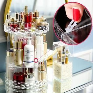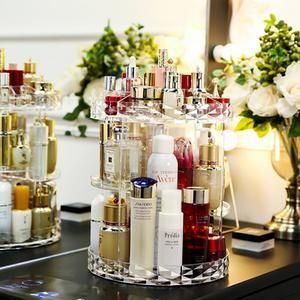 After I found a rotating makeup organizer ,all the problem have been solved .the organizer save a lot of space and very convenient when use .the most important is that my desk will be not seems messy when I own a rotating makeup organizer .