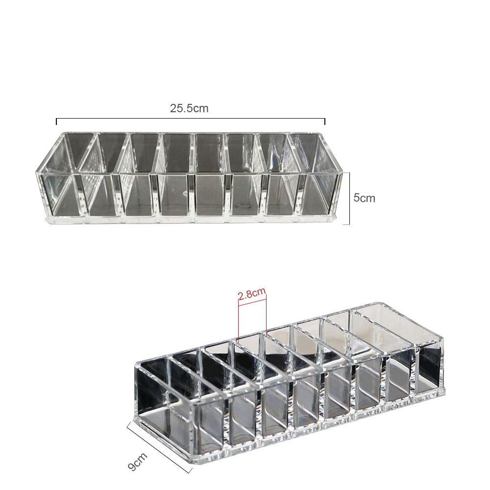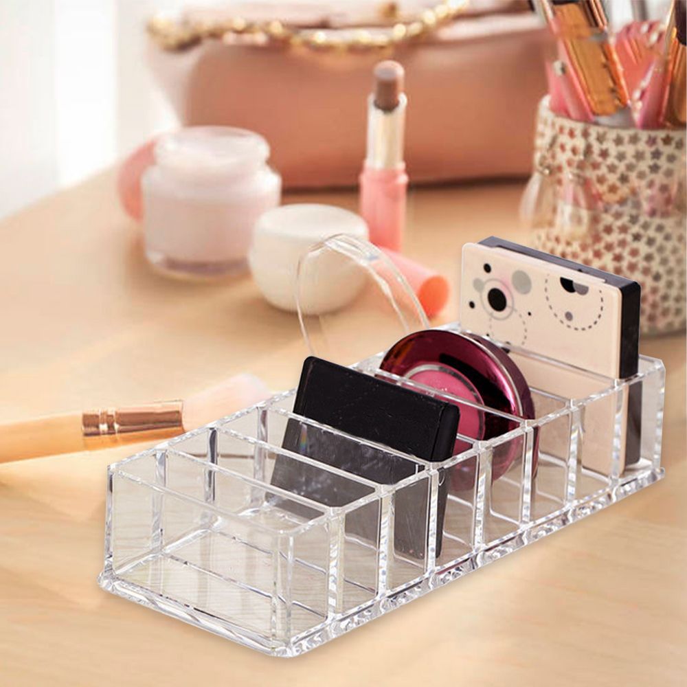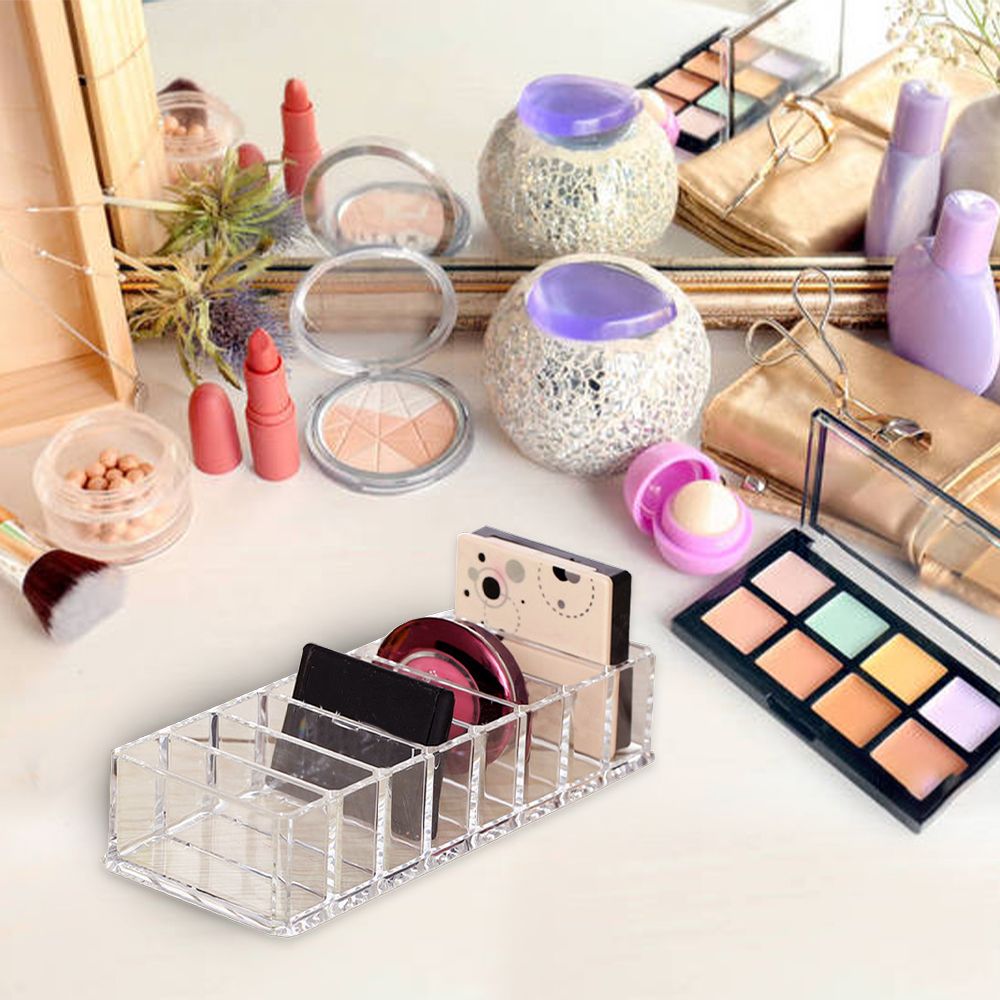 The cosmetic storage box is made of premium quality acrylic and durable. It consists of 8 grids and keeps everything in one place, fast and convenient to use. Ideal gift for wife or daughter.