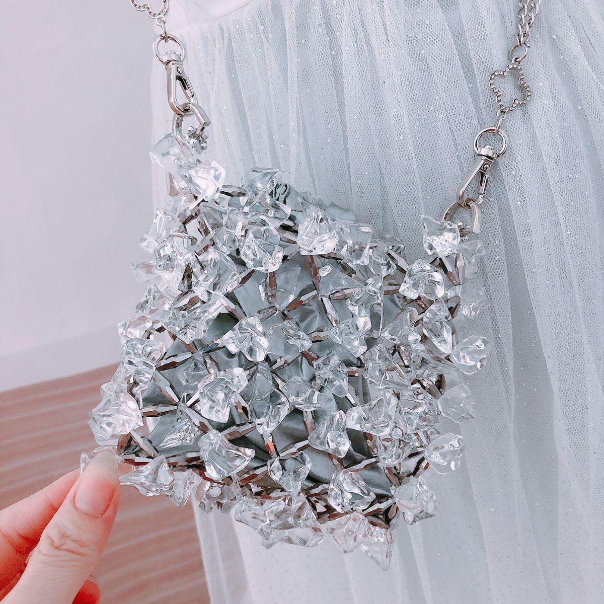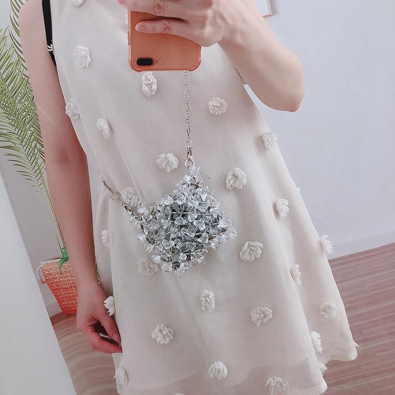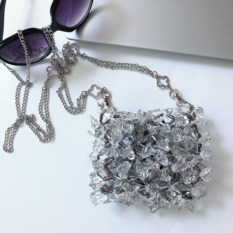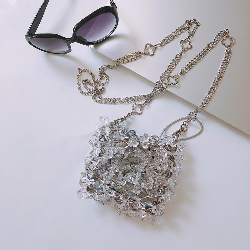 Buy Acrylic crystal glass chain bag, handmade beaded crossbody bag, transparent fairy phone bag in Nigeria