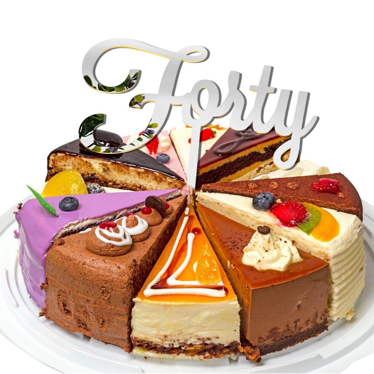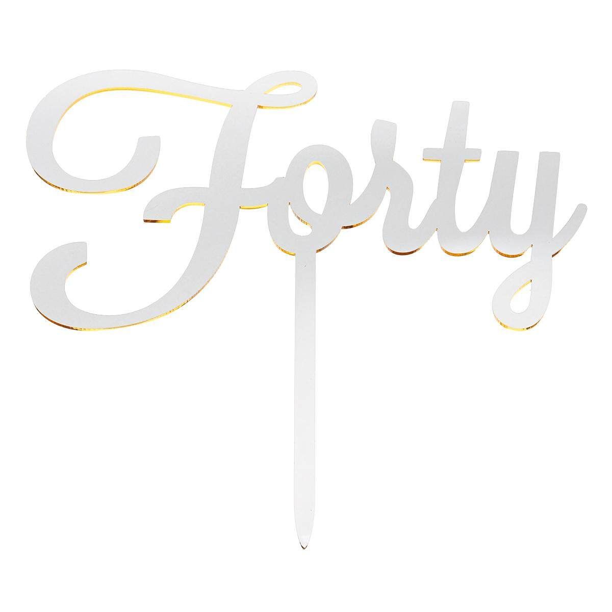 Acrylic Mirror Forty 40th Birthday Cake Topper Gold Silver