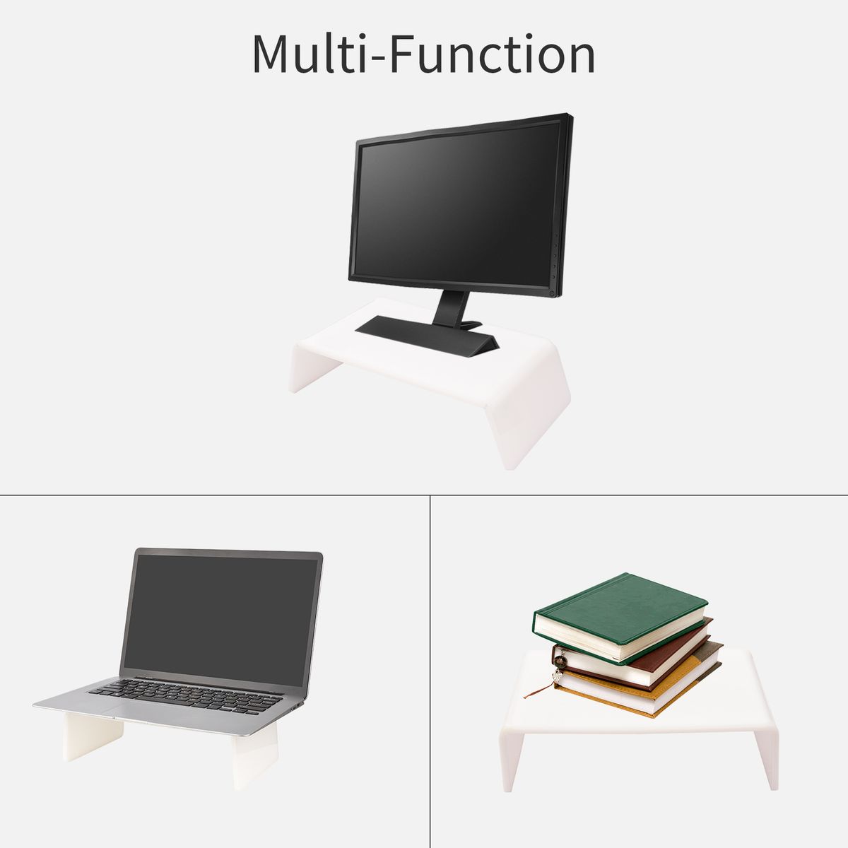 Features:This acrylic riser promotes good posture with over 3" elevation, match your eye level, help you reduce strain on neck and eyes, and make your workstation more user-friendly.