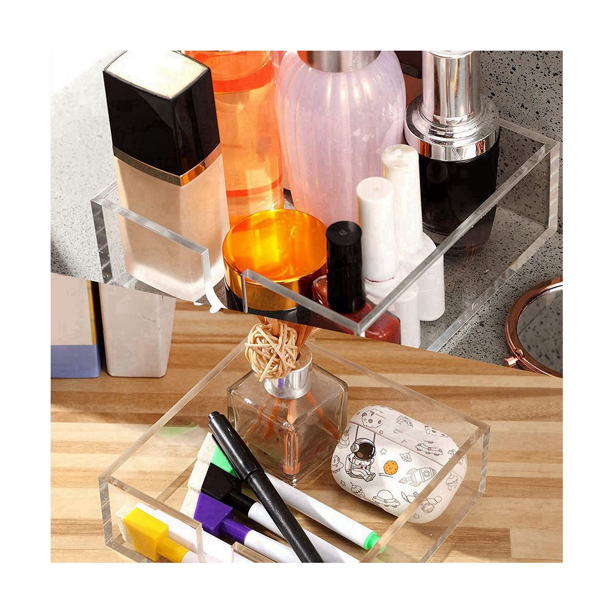 Adornment function: transparent and clear color is tie-in any adornment, let napkin holder simple stylish storage space for your table, desk, buffet stage, kitchen, you also can place towel on bathroom countertop to bring more , both decorative and practical