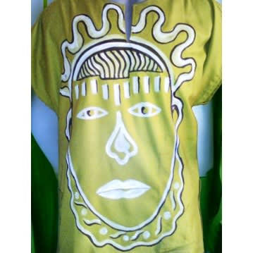 OmaAfri Designs & rsquo; handmade tie-dye shirt has striking artistic designs in either black or white acrylic ink. This is a unique fusion of creativity and craftsmanship, meticulously crafted to bring art to life in the form of wearable fashion.