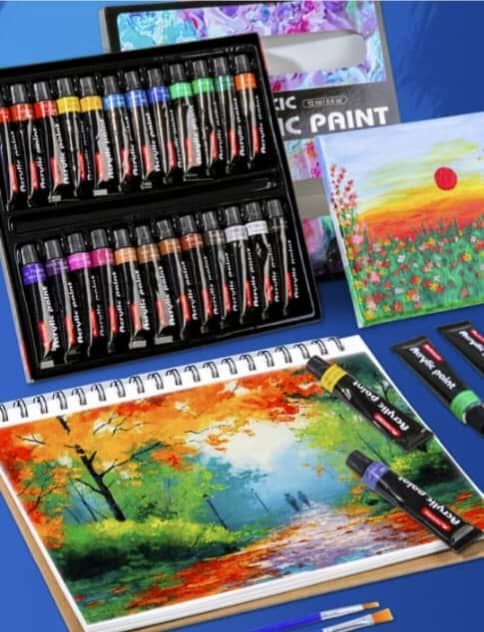 24 High Quality Vivid Colors in 12ml Tubes: A selection of unique eye-catching vibrant water-based acrylic colors that allow you to create stunning vivid masterpieces. They're ideal for use by beginners, professional artists, as well as the young aspiring artist.