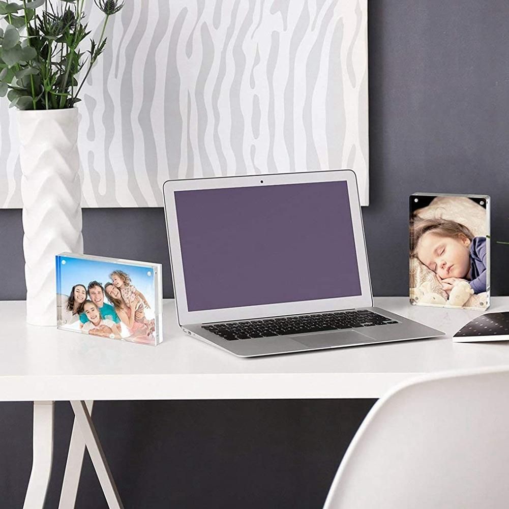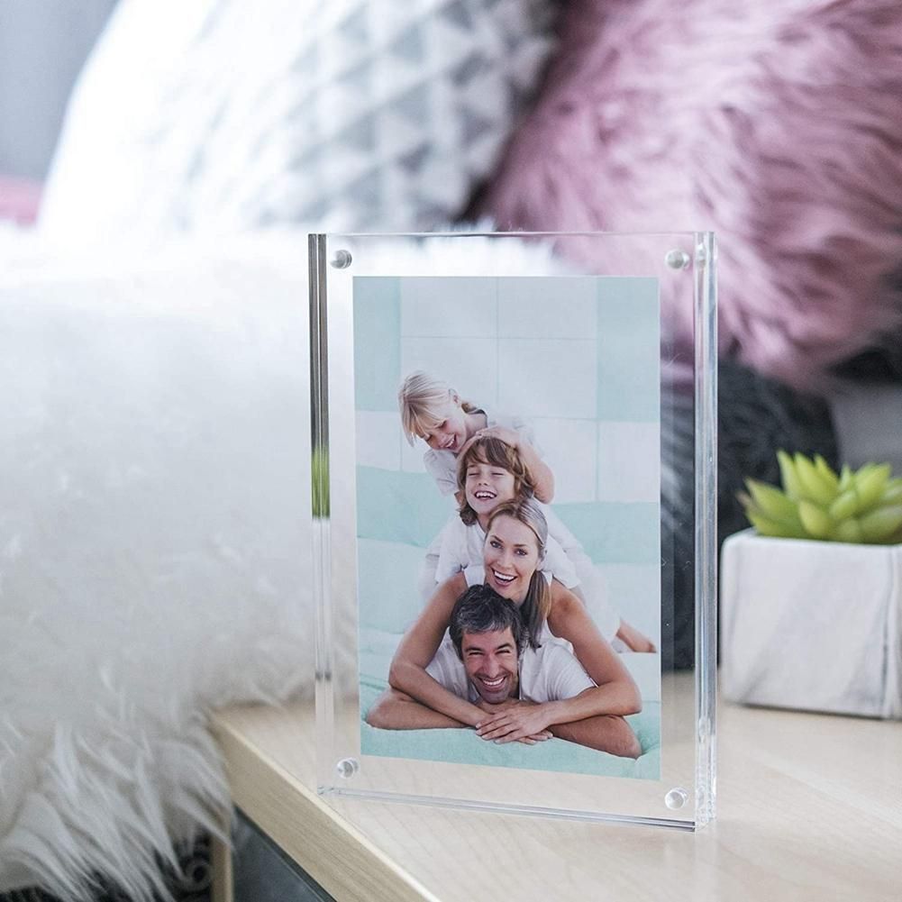 Decoration your living space: Designed as solid crystal clear block, clear vertical photo frame, frameless acrylic photo frame, acrylic photo frame with magnet