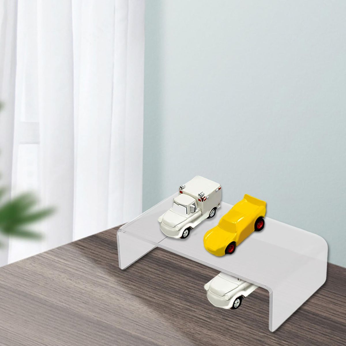 Acrylic display rack shelf.Great for displaying and organizing, accessories or wallet, mini cartoon figures, , glasses ,mobile phone,toiletries, or any other knickknacks.The raised tiers help to create an eye catching feature of your products.Let us to display an assortment of products in a neat and organized arrangement.Material: Acrylic