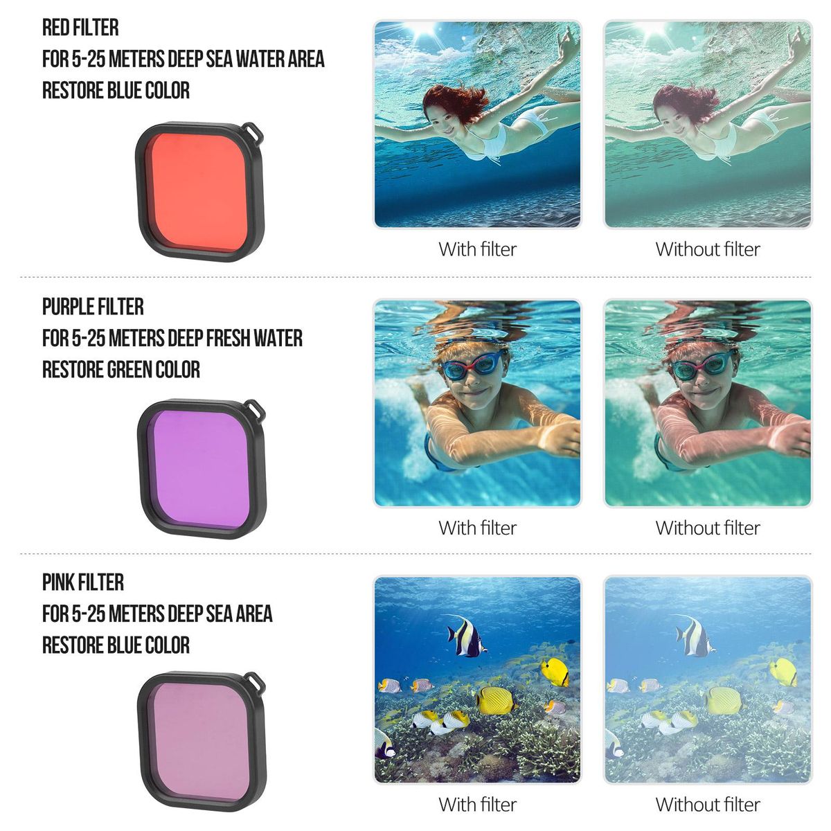 Buy Action Camera Waterproof Case + Red Pink Purple Filter Set Replacement for GoPro Hero 9 GoPro Hero 10 Diving Surfing Snorkeling in Nigeria