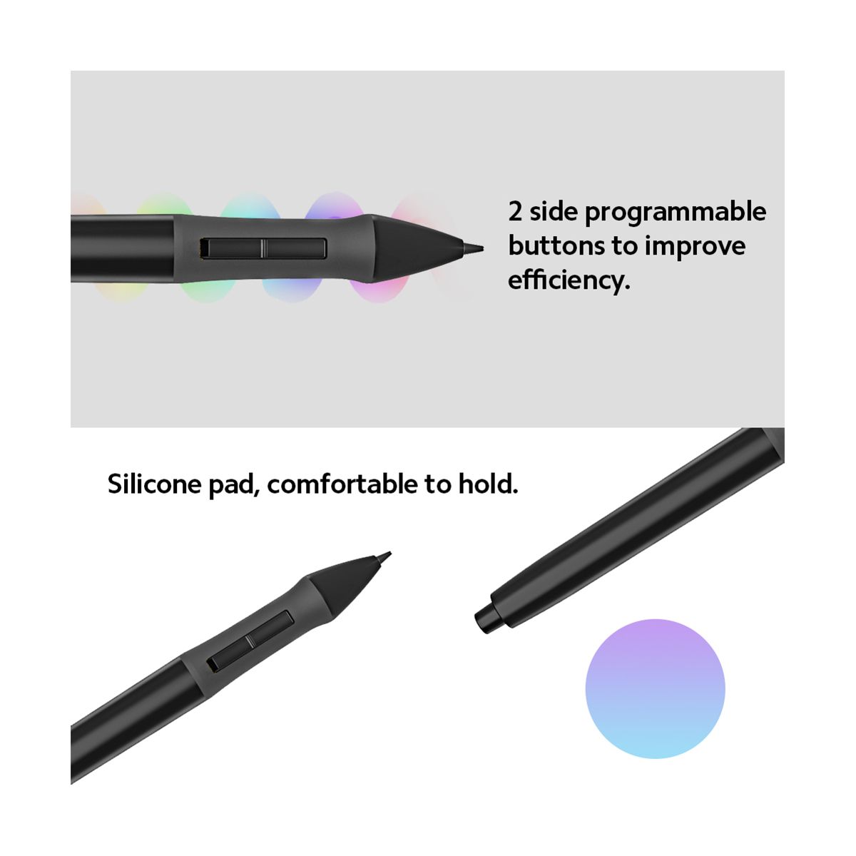 It's buttons can be programmed for specific functions such as a right-click or left-click just like a wireless mouse,and You can also scroll documents and Web pages by pressing the middle button of the digital pen over the tablet working area, so it fits for both right and left hand users